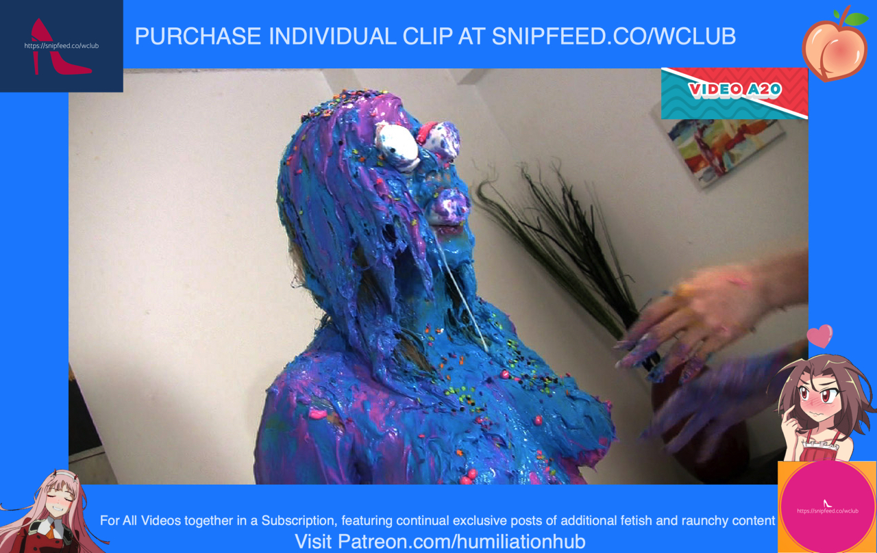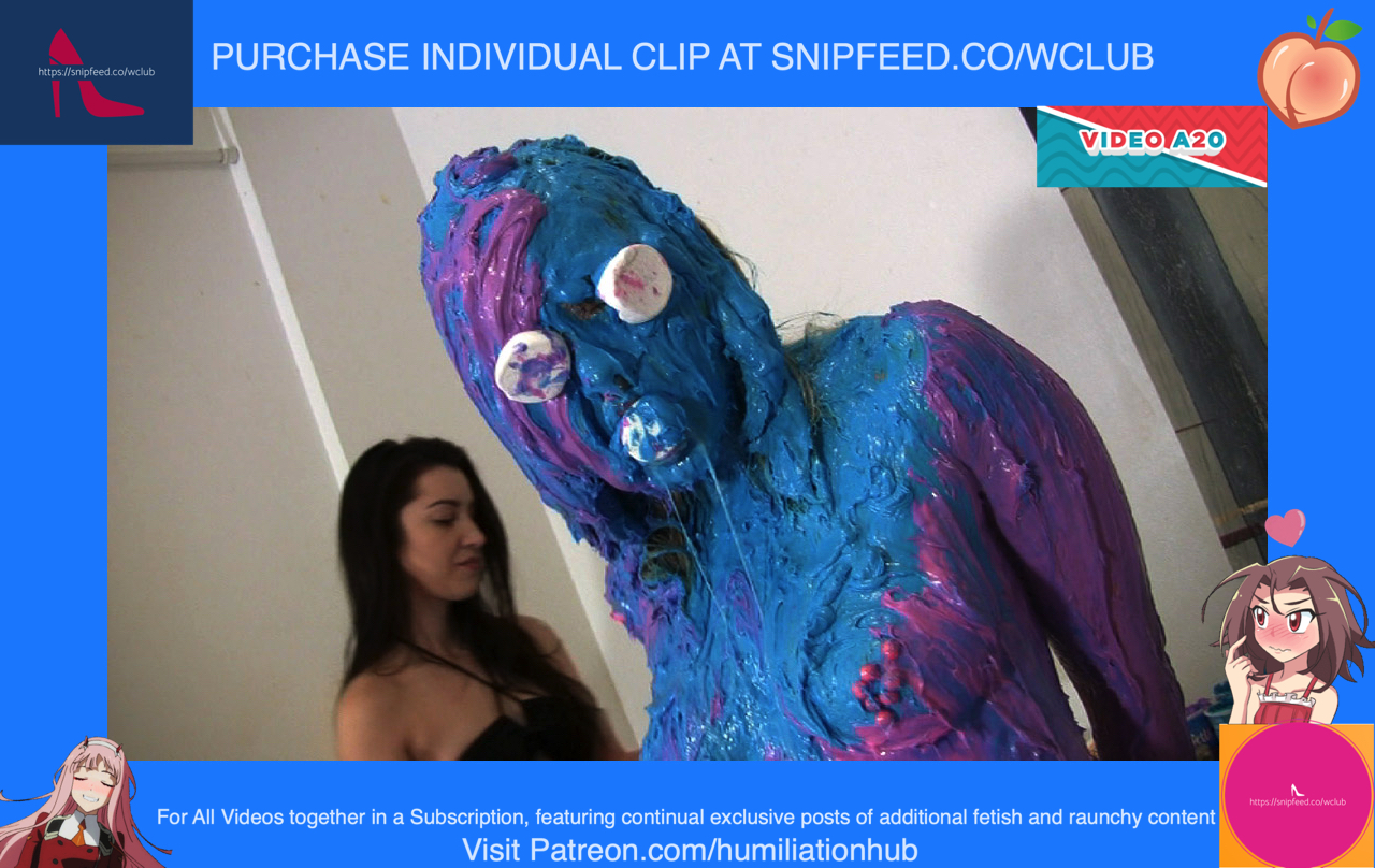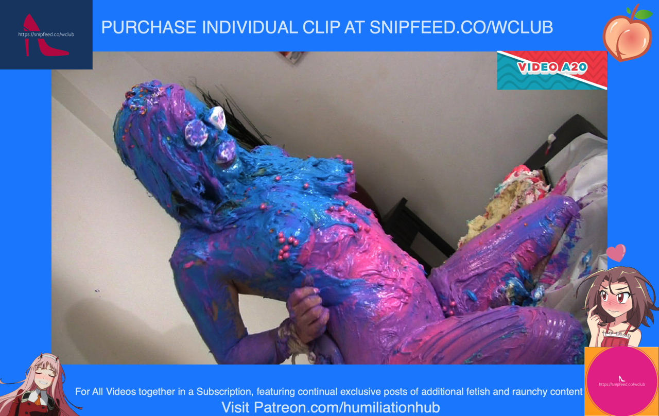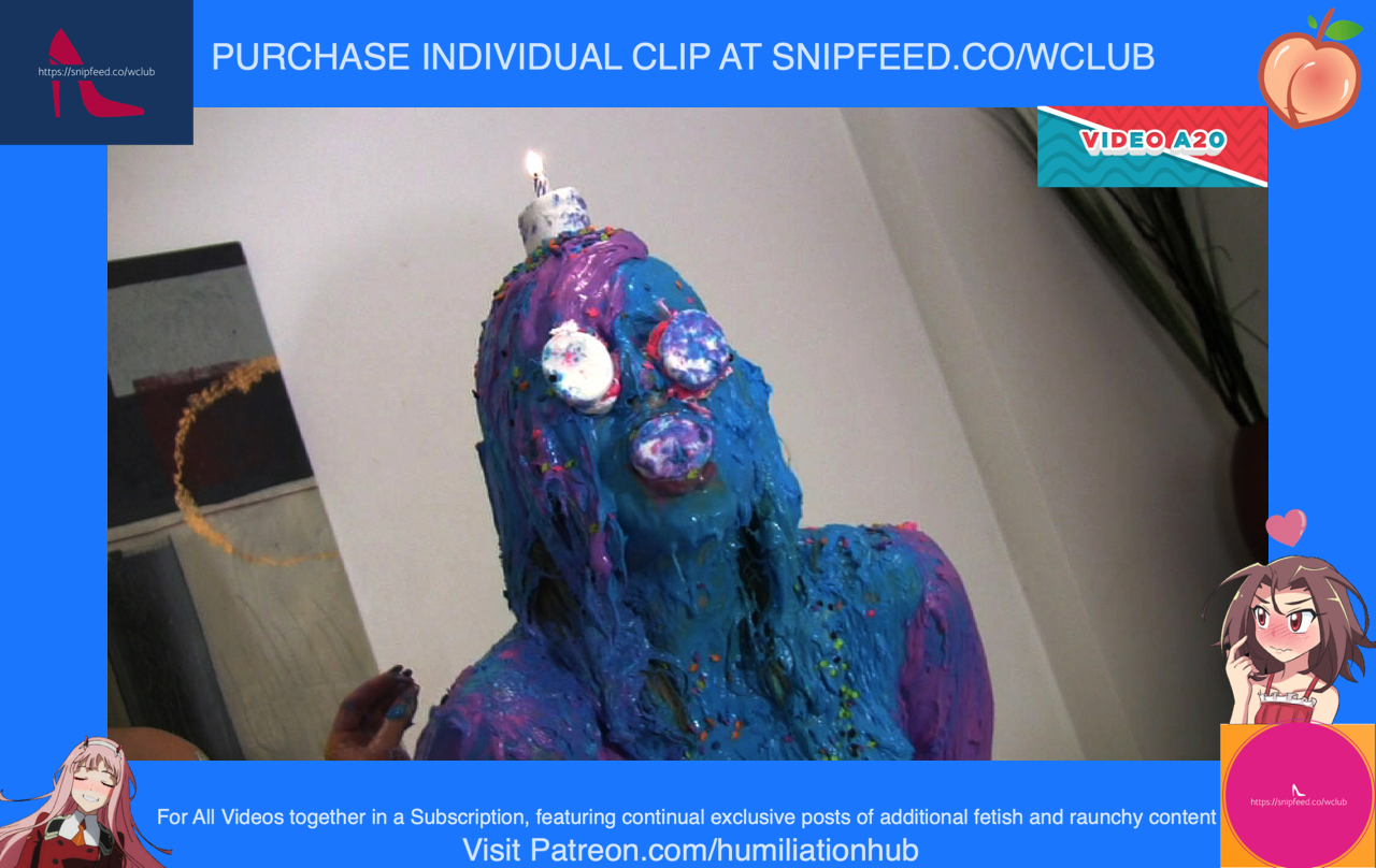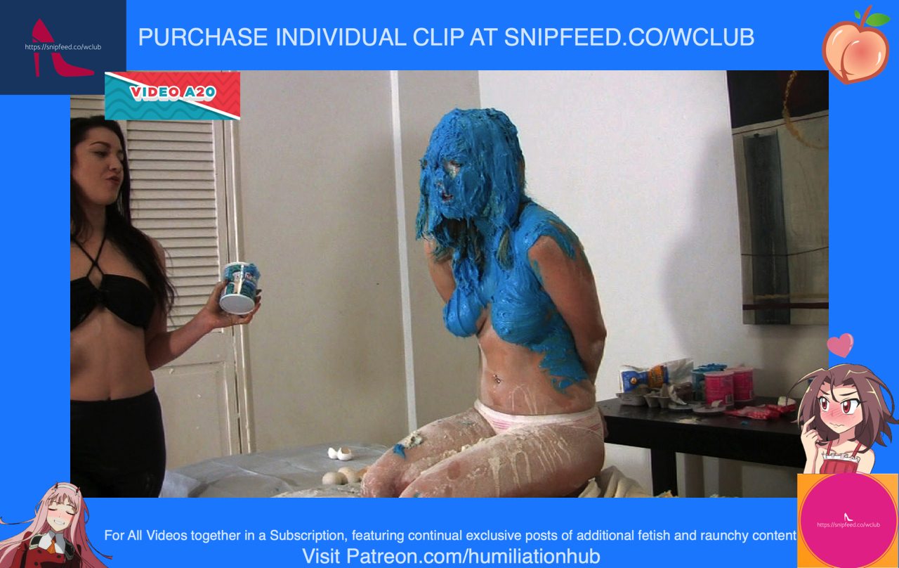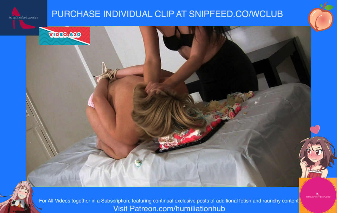 Jessica under guise, starts to massage her very hard and vigorously. Anastasia starts to complain until she turns around to investigate. She turns around and sees it’s Jessica! But its too late! Jessica grabs her and ties her hands behind her backs with bondage rope. Now she’s on her knees begging for mercy. On the massage table, Jessica briefly places Anastasia’s birthday cake to show her what comes next. Grabbing Anastasia by the hair, she smashes her face repeatedly into the cake. This destroys Anastasia’s cake, but Jessica decides to make up for it by making her own birthday cake. However, one of the ingredients will be Anastasia herself. First, she places eggs over Anastasia’s head. Then, she places a bag of flour all over her. Next, she places butter cream frosting all over her face, hair, and body. Ofcourse, the panties need to come off (gracefully ripped off) in order to make this cake. Next, comes the decorations. She places a giant marshmallow in Anastasia’s mouth and one for each eye. Now, she sprinkles butter cream butter cream all over her butter cream body. Finally, two lit candles are placed on top of her head. Now that Anastasia is officially a freaky nude human birthday cake, Jessica celebrates by singing happy birthday to her and blowing out the candles. “Happy birthday you SLUT!” - Says Jessica has she triumphantly leaves a poor sobbing Anastasia in her humiliatingly restrained wet and messy cake bondage state. Somebody eat her out to cheer her up!