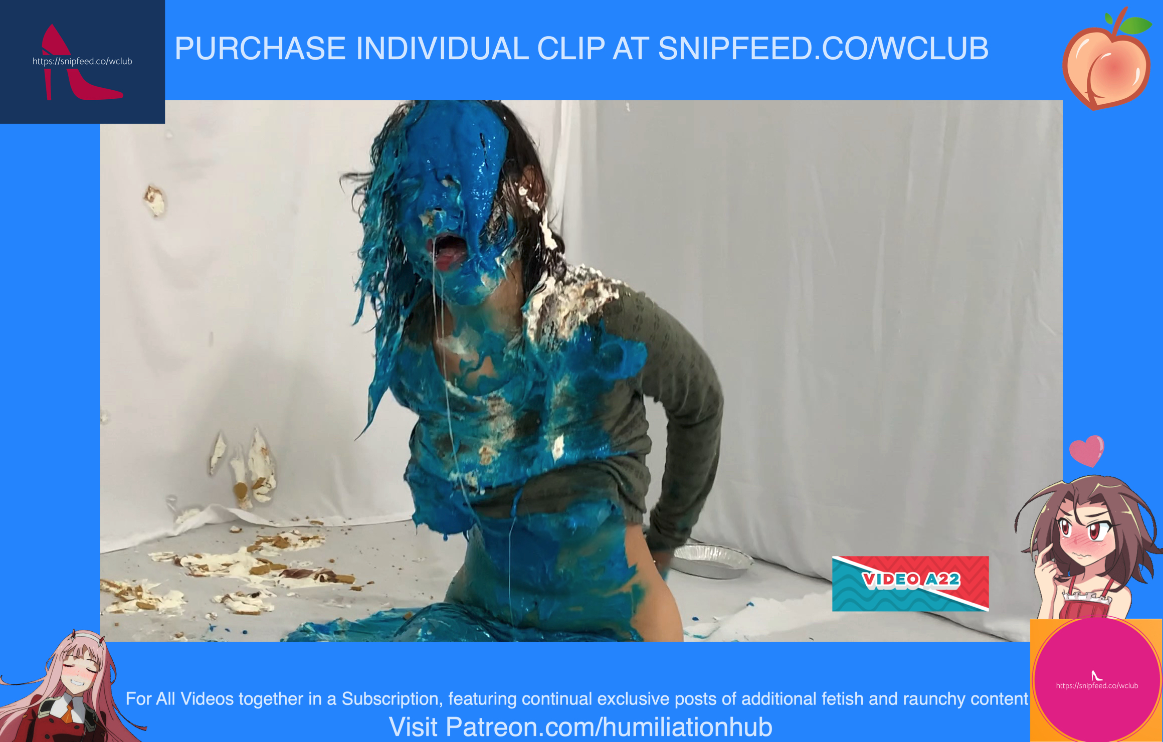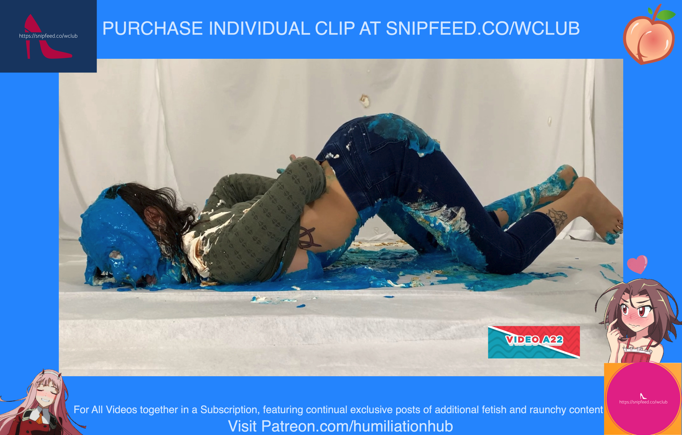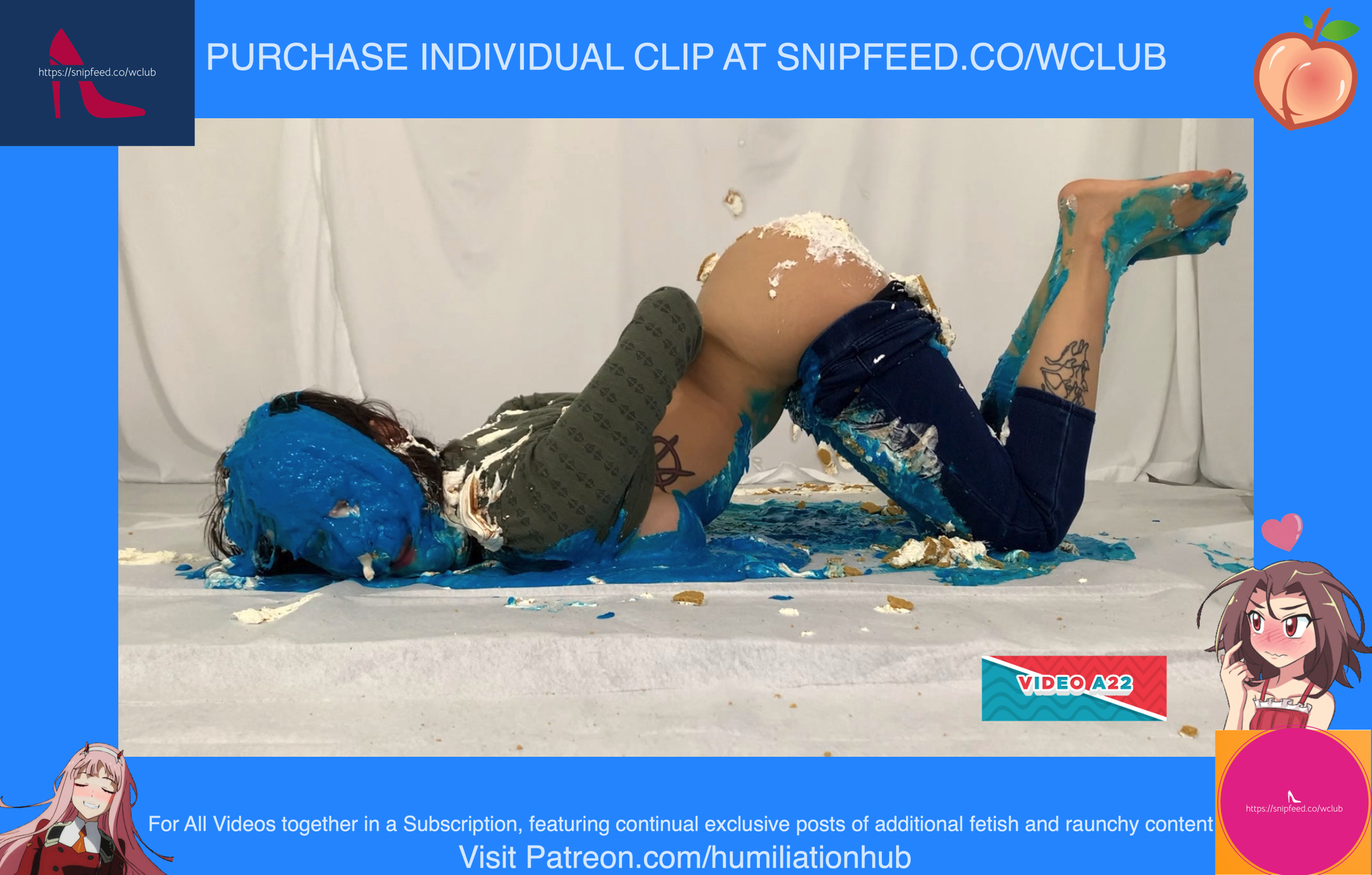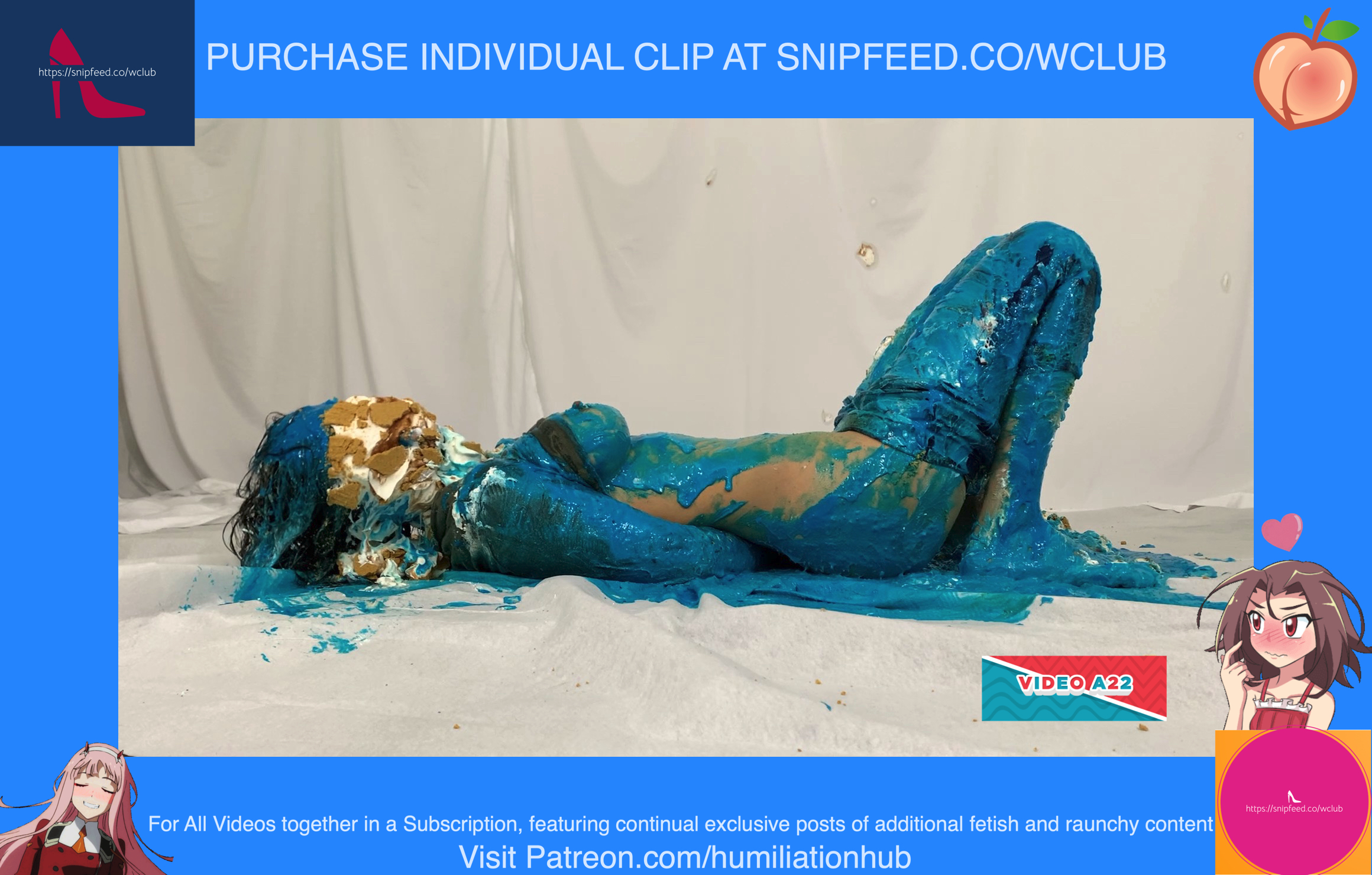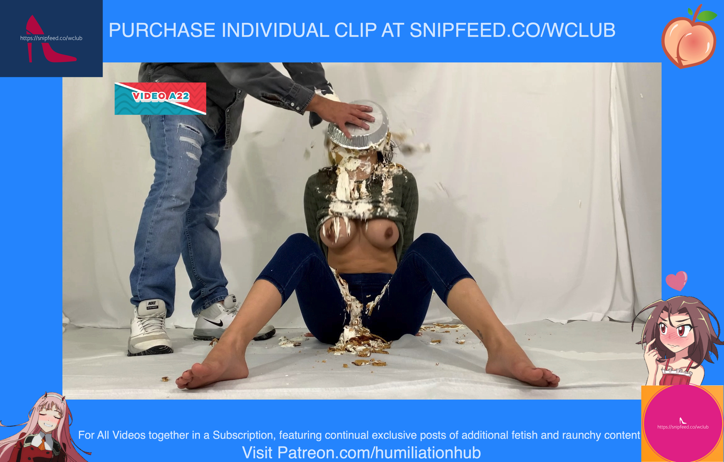 Cynthia is back and this time she's tied up and gagged. She's waiting on the floor to be pied hard and then covered with blue slime. She's wearing a ring gag so the pies can go all the way in her mouth. She has no option but to let the pies drool out of her mouth. One of the pies goes all the way in and the cream even comes out of her nose later on in the video. To make things even worse, they pull her jeans down and put a pie to her round naked ass allowing it to gracefully droop deeper into her lady parts. You can see for yourself. She's trying to get up but just can't. She finally manages to get to her feet and walk away from the mess. If you're into messy bondage and you like a girl that struggles in the mess then you'll love this video.