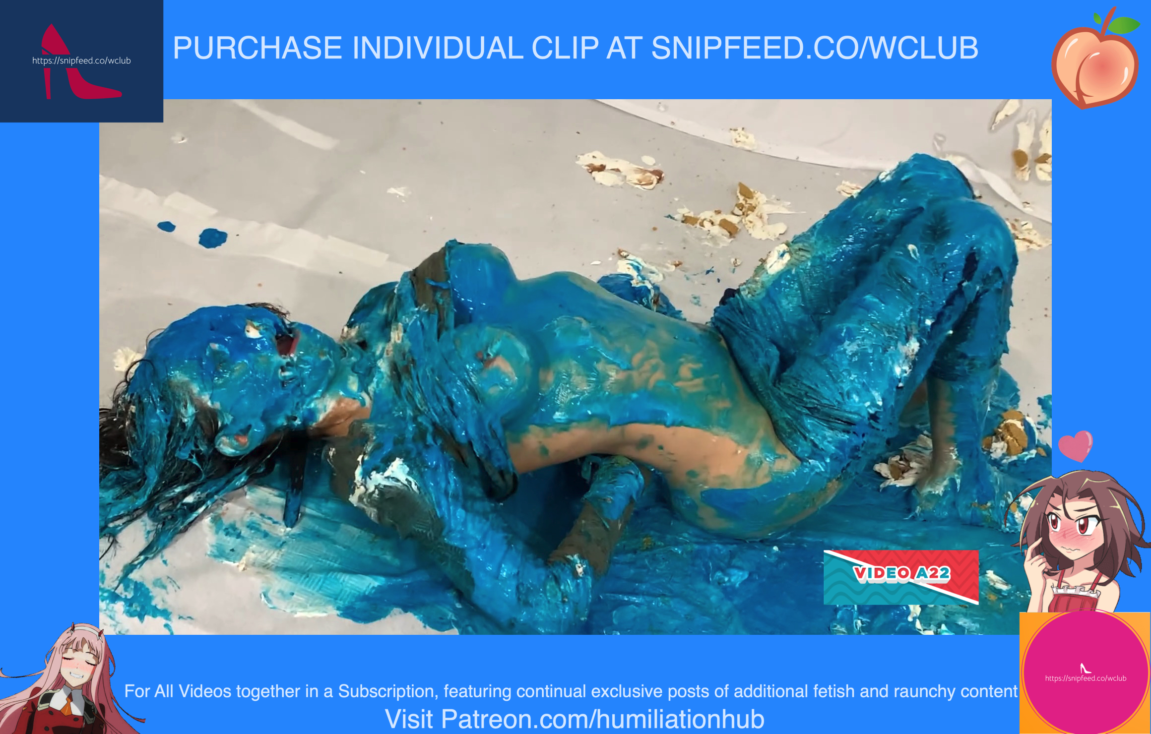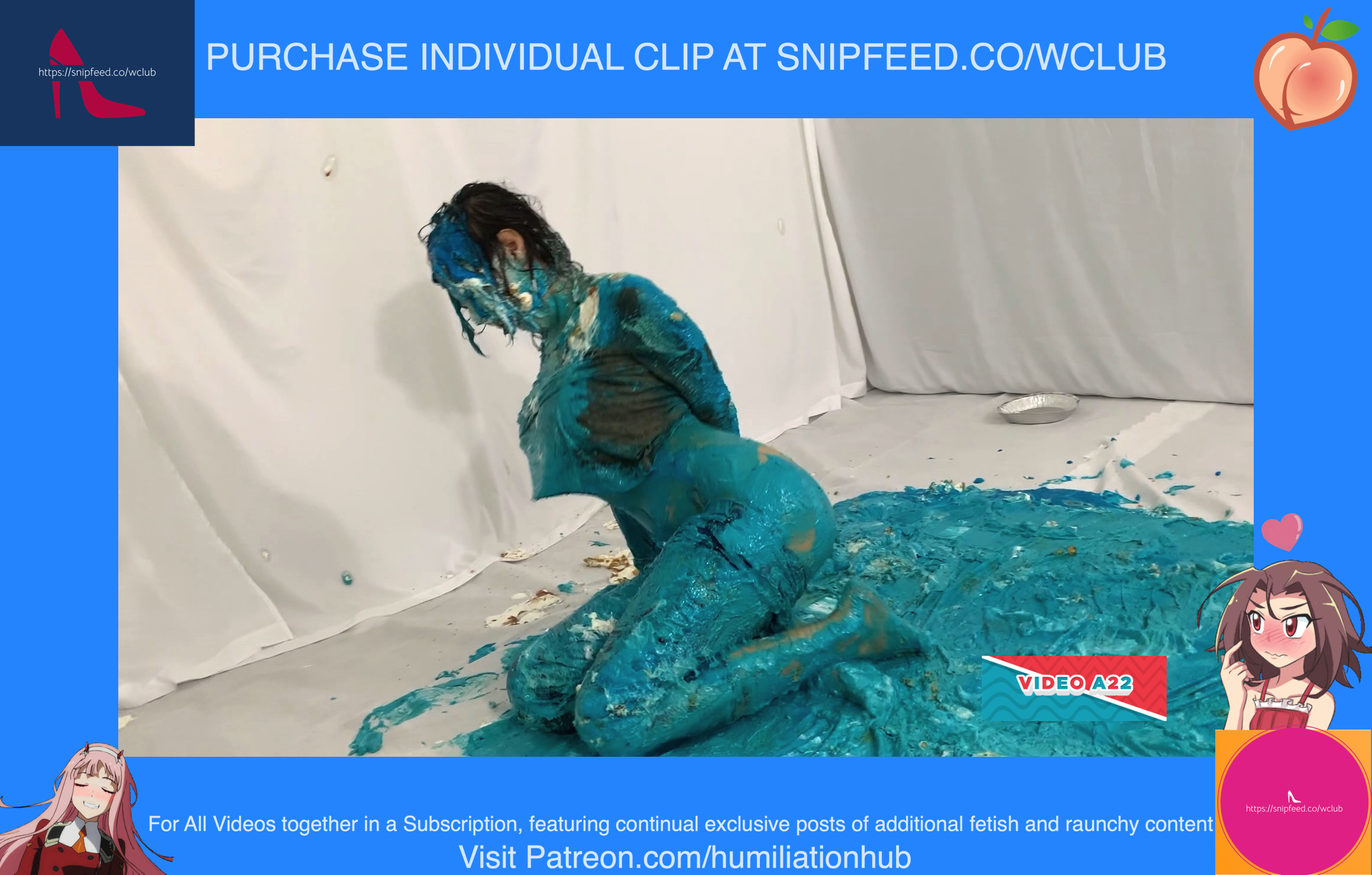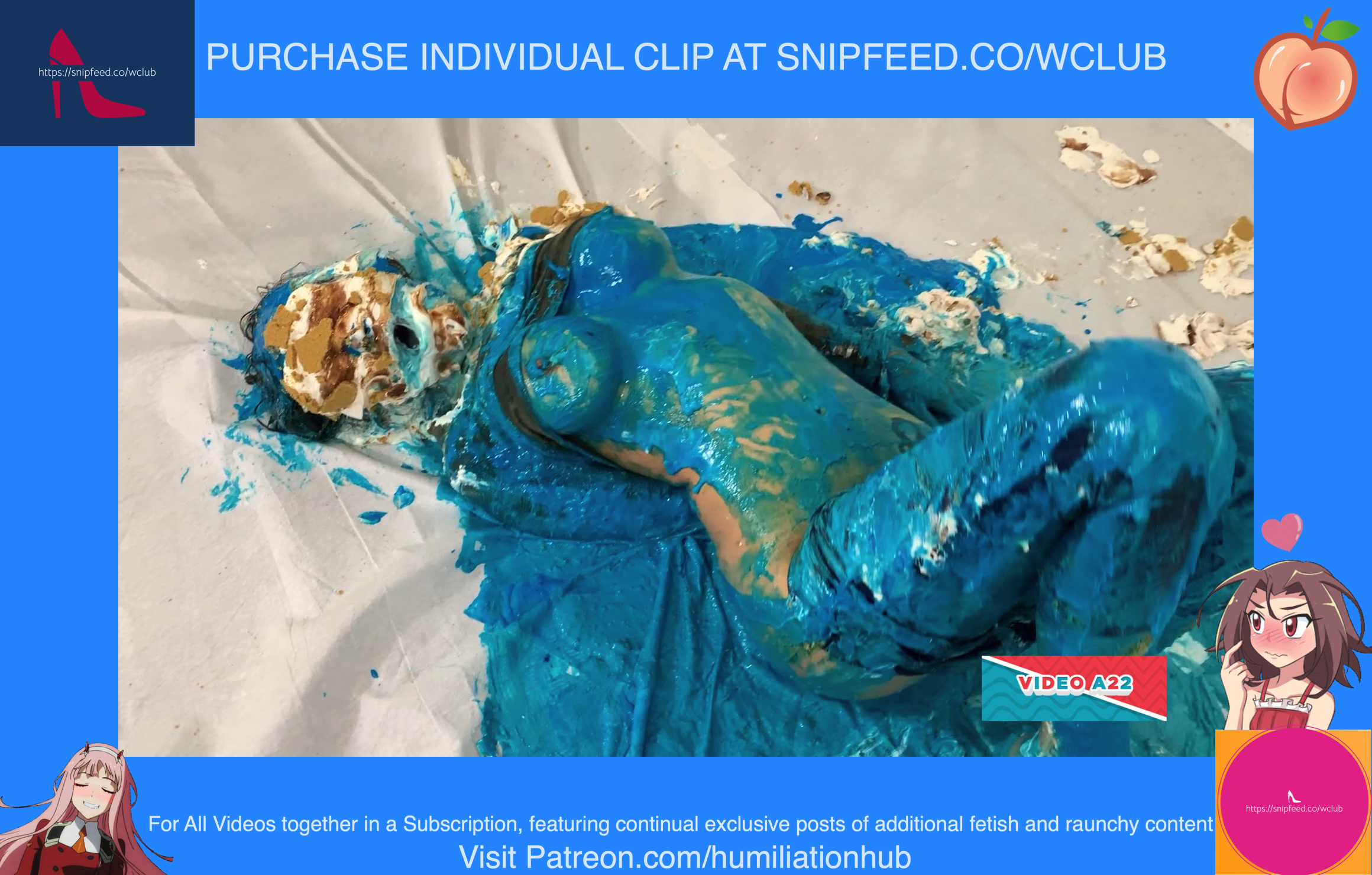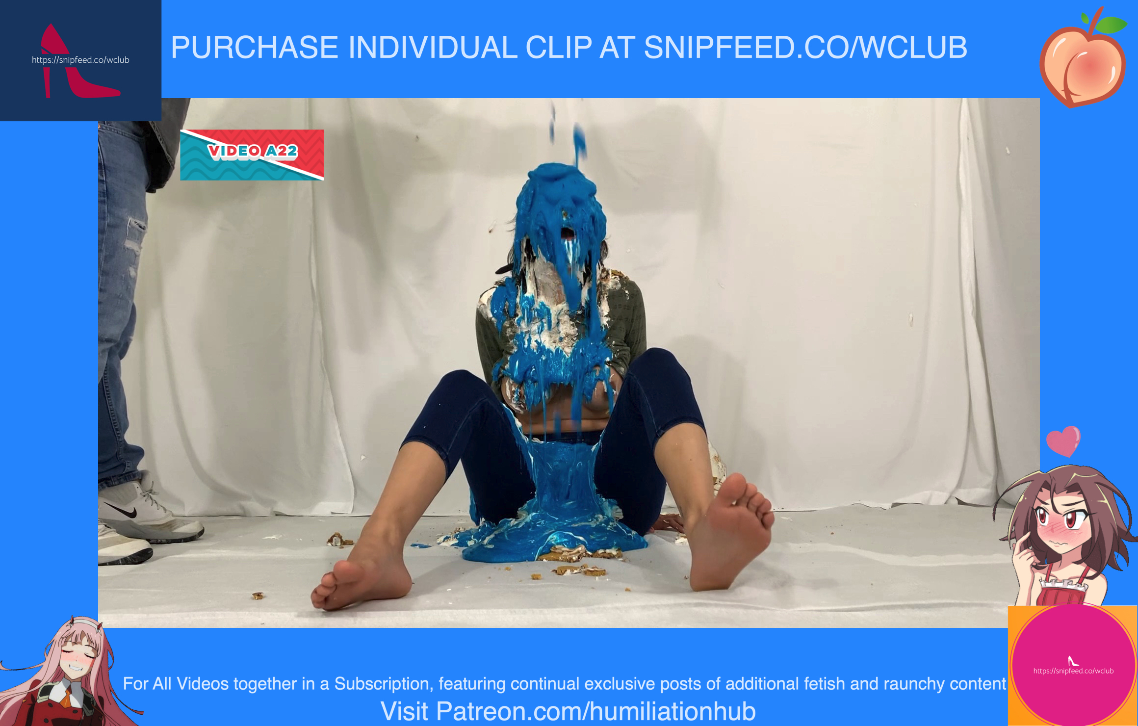 Cynthia is back and this time she's tied up and gagged. She's waiting on the floor to be pied hard and then covered with blue slime. She's wearing a ring gag so the pies can go all the way in her mouth. She has no option but to let the pies drool out of her mouth. One of the pies goes all the way in and the cream even comes out of her nose later on in the video. To make things even worse, they pull her jeans down and put a pie to her round naked ass allowing it to gracefully droop deeper into her lady parts. You can see for yourself. She's trying to get up but just can't. She finally manages to get to her feet and walk away from the mess. If you're into messy bondage and you like a girl that struggles in the mess then you'll love this video.