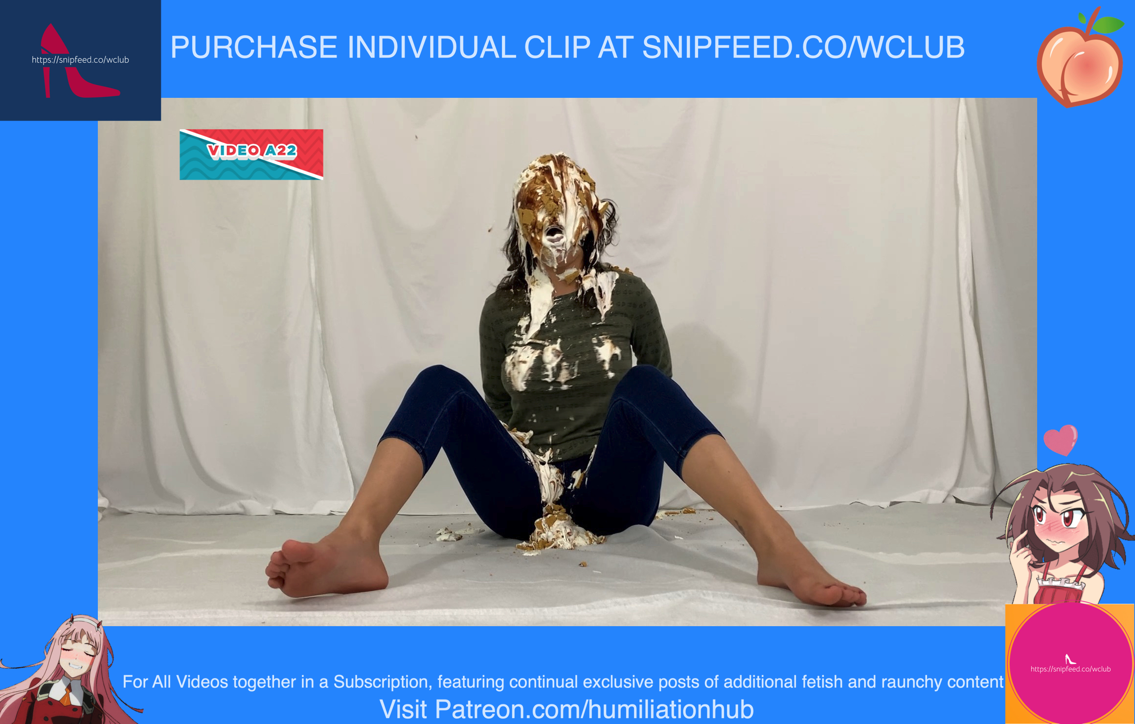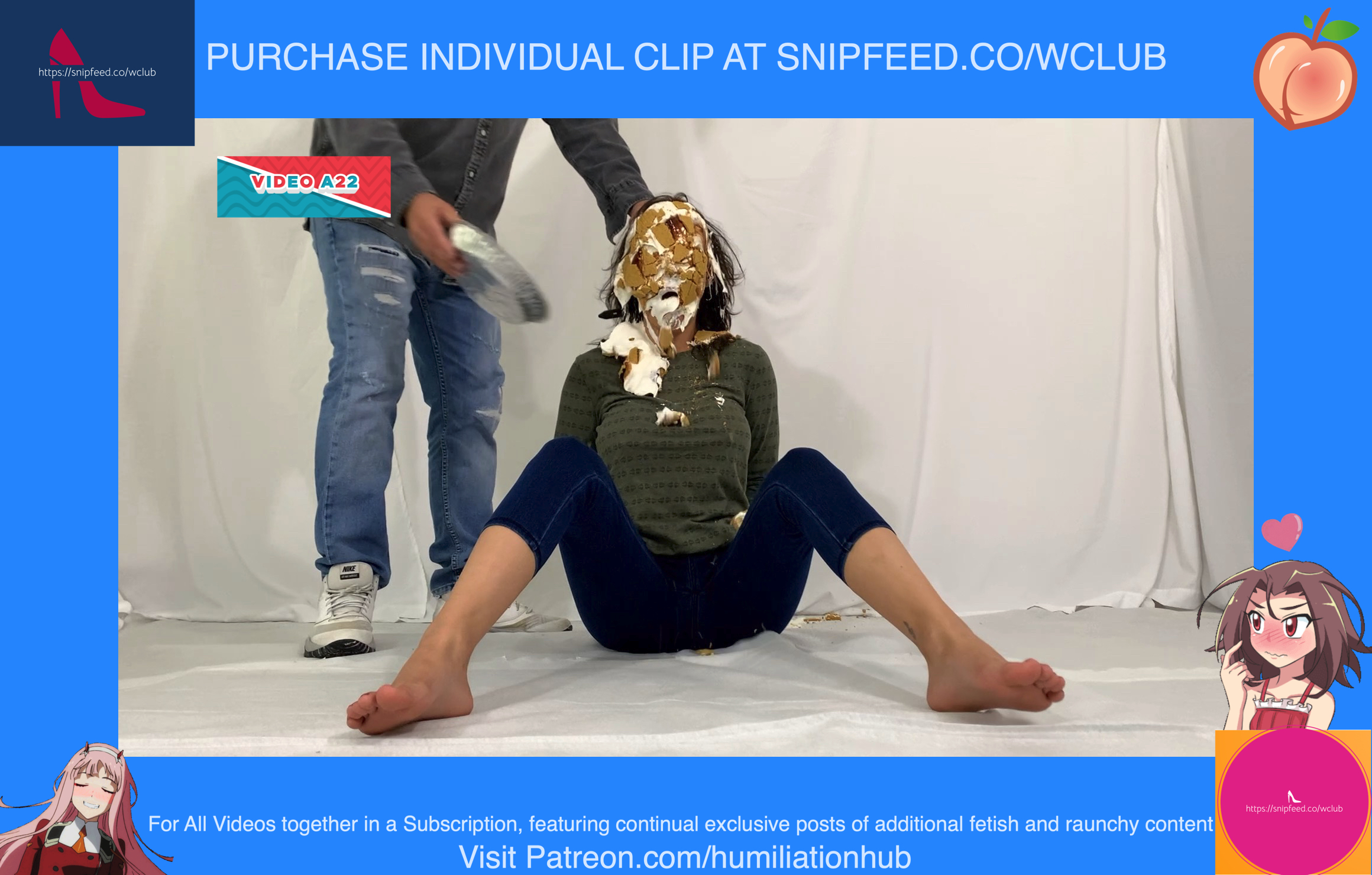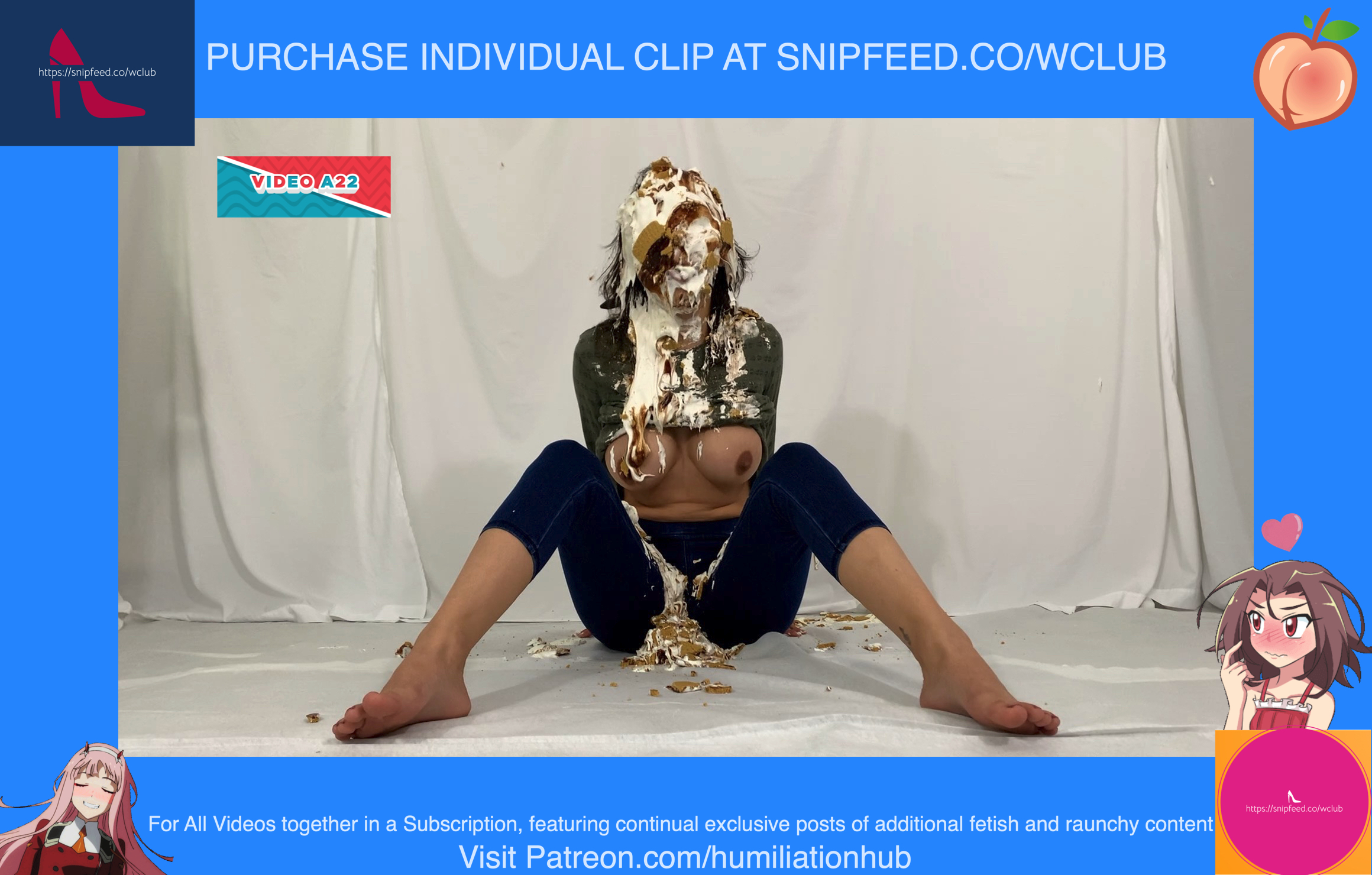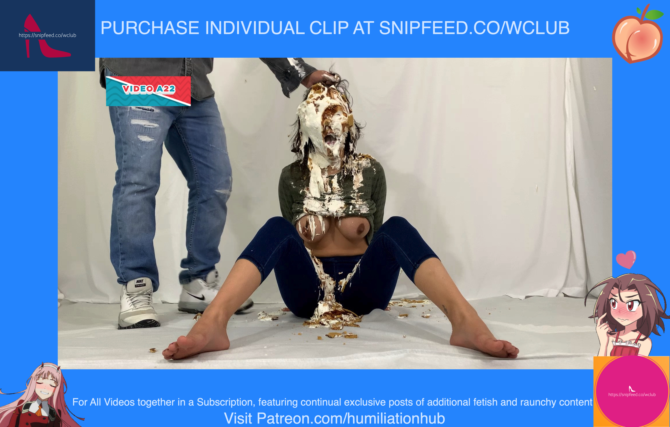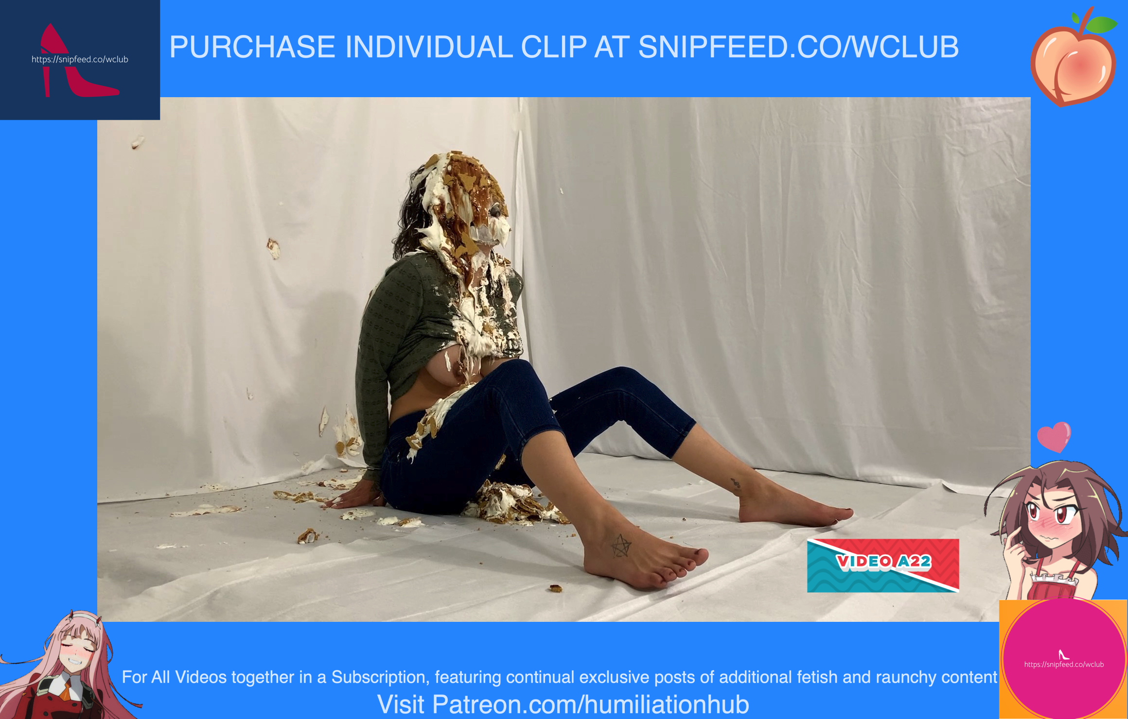 Cynthia is back and this time she's tied up and gagged. She's waiting on the floor to be pied hard and then covered with blue slime. She's wearing a ring gag so the pies can go all the way in her mouth. She has no option but to let the pies drool out of her mouth. One of the pies goes all the way in and the cream even comes out of her nose later on in the video. To make things even worse, they pull her jeans down and put a pie to her round naked ass allowing it to gracefully droop deeper into her lady parts. You can see for yourself. She's trying to get up but just can't. She finally manages to get to her feet and walk away from the mess. If you're into messy bondage and you like a girl that struggles in the mess then you'll love this video.