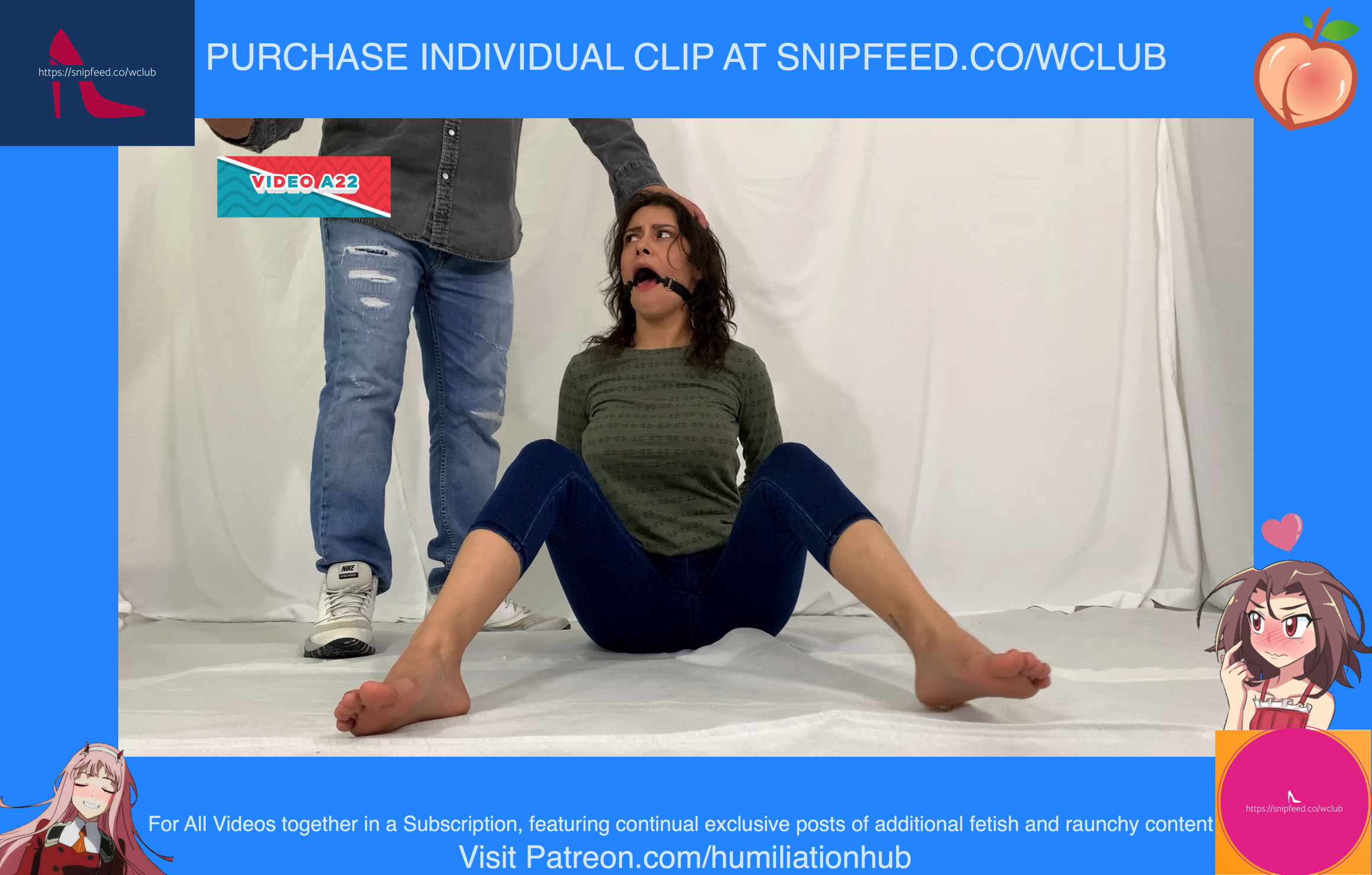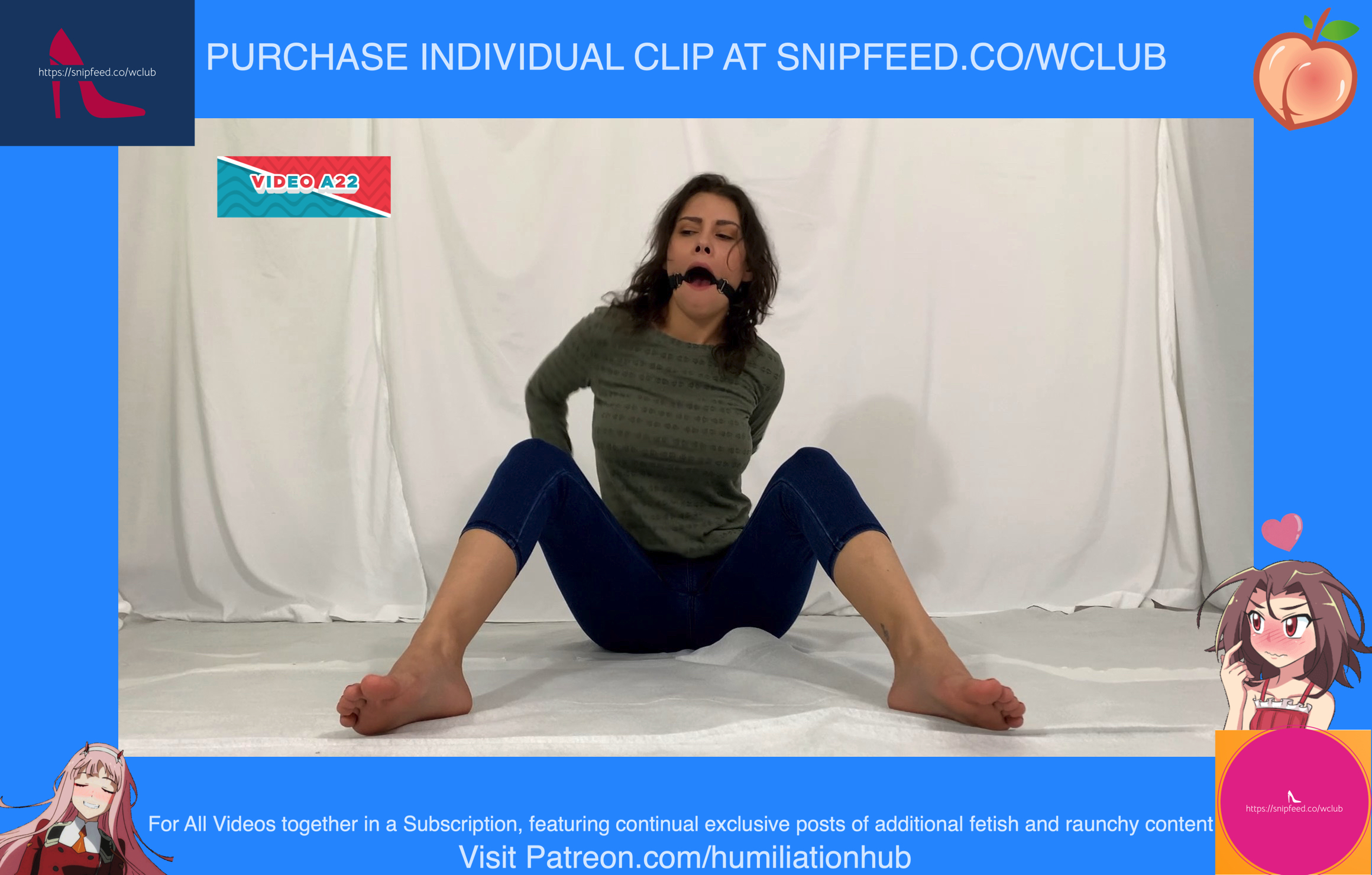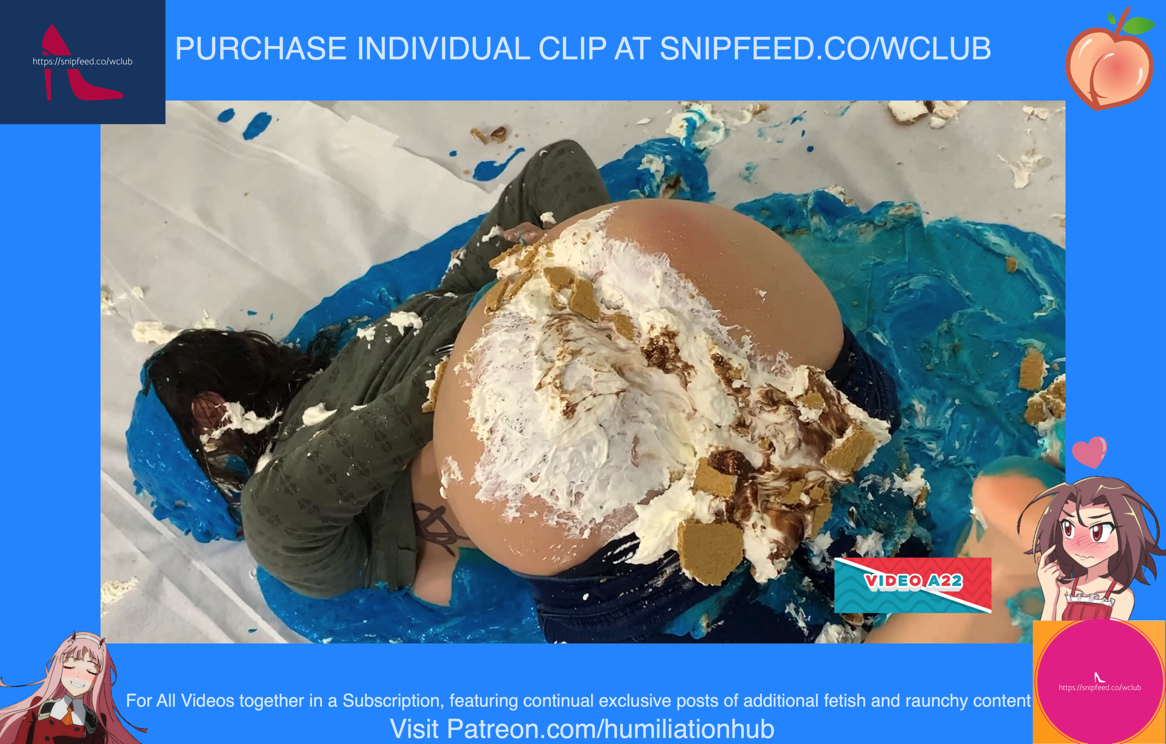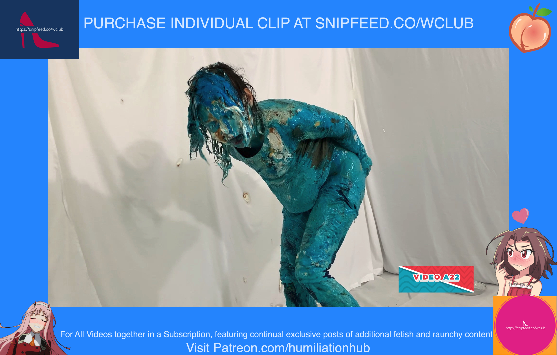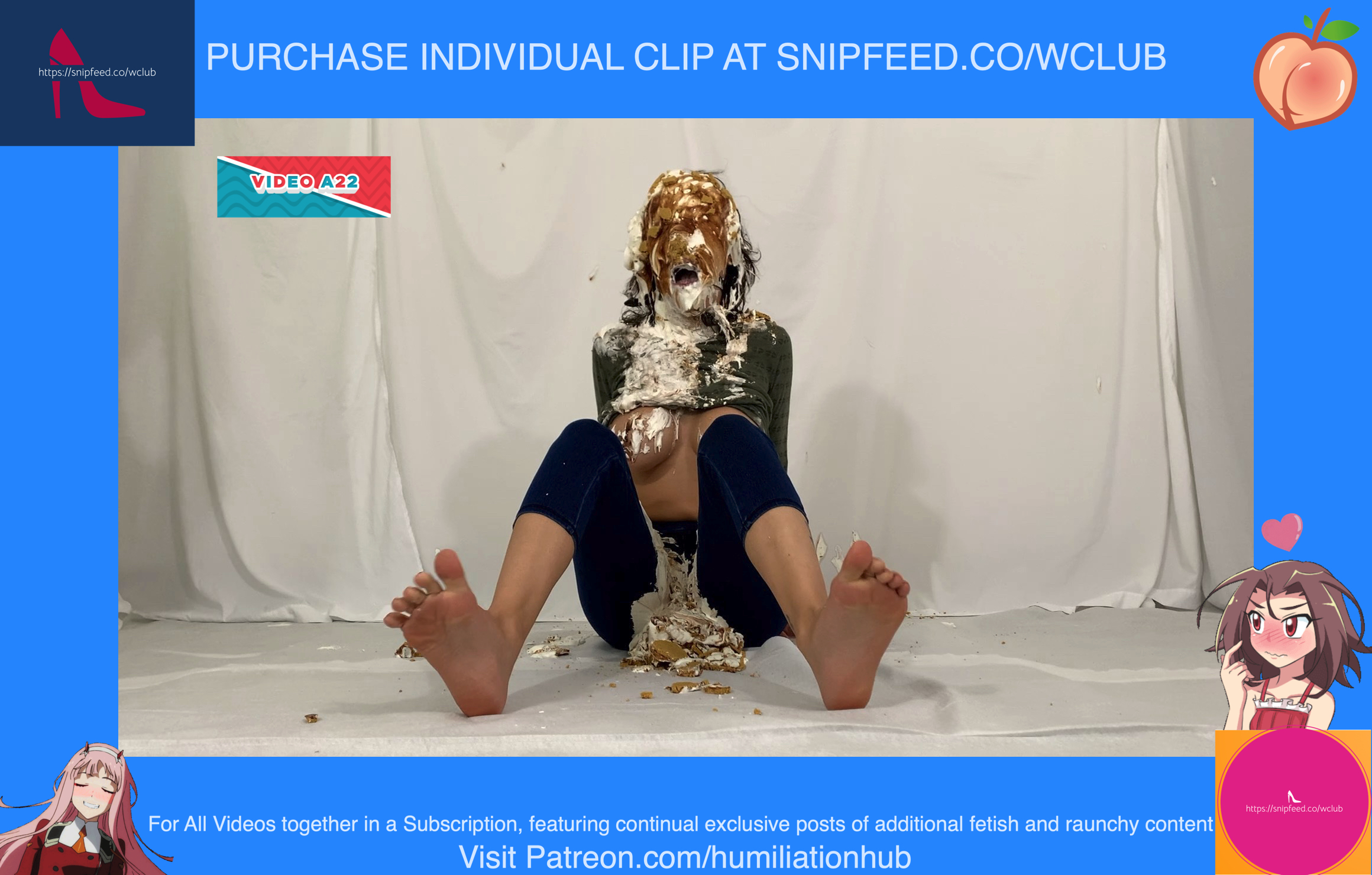 Cynthia is back and this time she's tied up and gagged. She's waiting on the floor to be pied hard and then covered with blue slime. She's wearing a ring gag so the pies can go all the way in her mouth. She has no option but to let the pies drool out of her mouth. One of the pies goes all the way in and the cream even comes out of her nose later on in the video. To make things even worse, they pull her jeans down and put a pie to her round naked ass allowing it to gracefully droop deeper into her lady parts. You can see for yourself. She's trying to get up but just can't. She finally manages to get to her feet and walk away from the mess. If you're into messy bondage and you like a girl that struggles in the mess then you'll love this video.